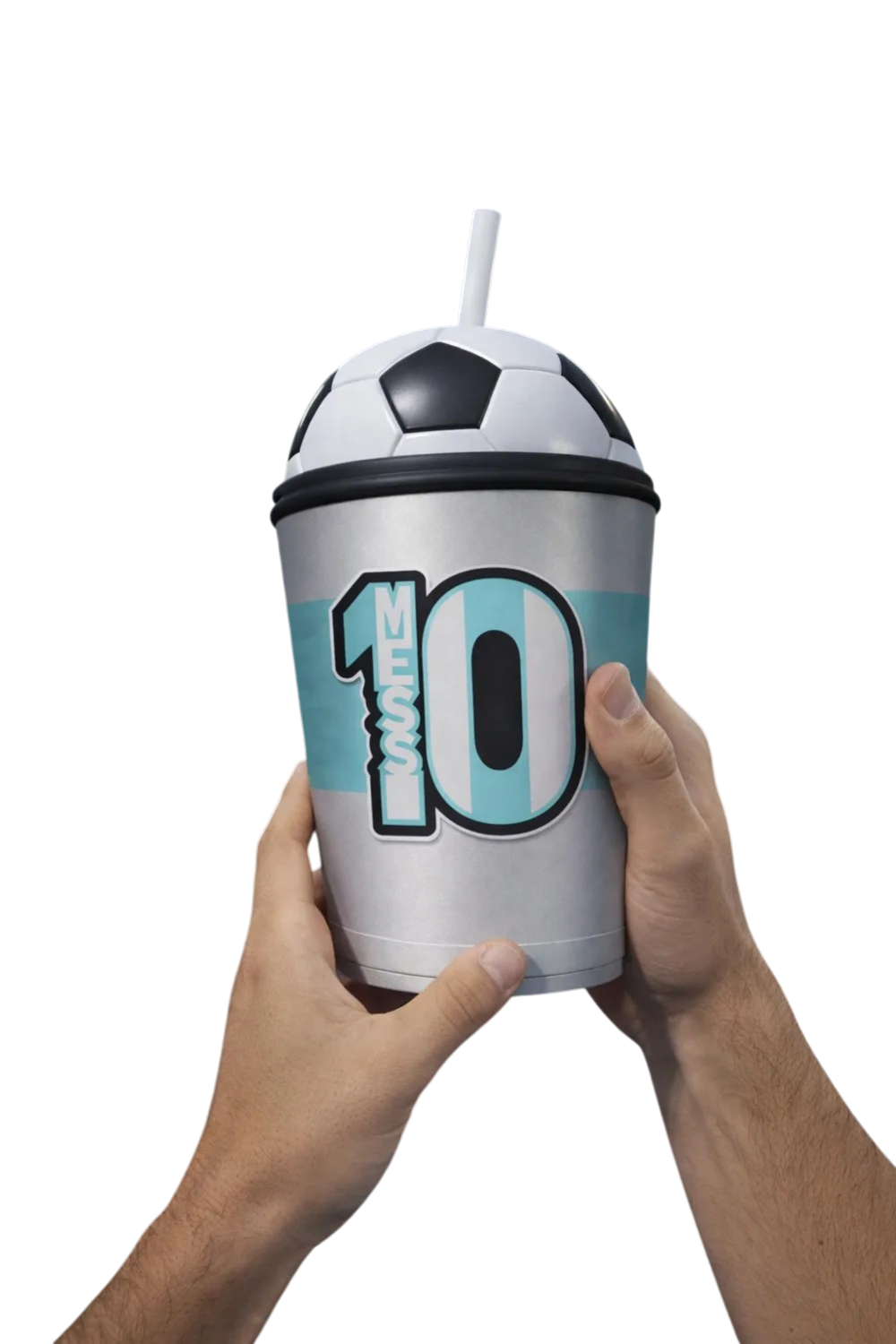 Perfecto para disfrutar milkshakes, jugos o bebidas frías, este vaso también es una excelente opción de regalo para chicos y grandes amantes del fútbol.